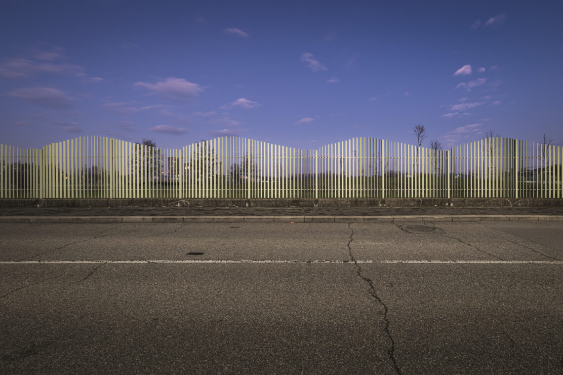 Le fotografie spaziano dal paesaggio urbanizzato di un’autostrada olandese che ricorda Mondrian più che Van Gogh alle atmosfere rarefatte lungo il Naviglio grande; dalle tante sfaccettature delle grandi vie d’accesso di una Milano non solo da bere alla stratificazione del paesaggio lungo una piccola porzione di strada del territorio valdostano che attraversa il capoluogo. Per arrivare infine a Roma e ai non luoghi che affollano una realtà metropolitana caotica come quella a ridosso del Grande Raccordo Anulare di Roma: dalle forme e i colori che ridisegnano le periferie, con quartieri più simili a set cinematografici che posti da abitare, fino all’onnipresente e a volte ingrato verde urbano, che lotta per riconquistare i suoi spazi.